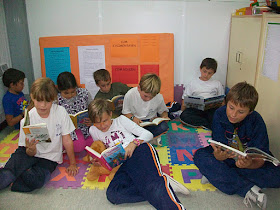 Els nens i nenes de Cicle Mitjà us volem ensenyar el nostre racó de lectura a l'aula. En aquest espai estem molt còmodes amb els nostres coixins i els nostres llibres preferits de la biblioteca d'aula, que llegim individualment o amb altres companys/es.