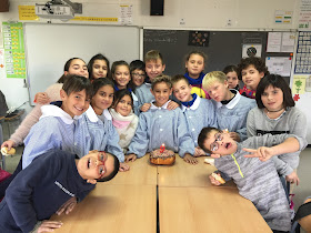 El passat 12 de desembre vam celebrar l'aniversari del Jesús amb els companys i companyes de 4t. Per esmorzar ens va convidar a un pastís molt bo!
